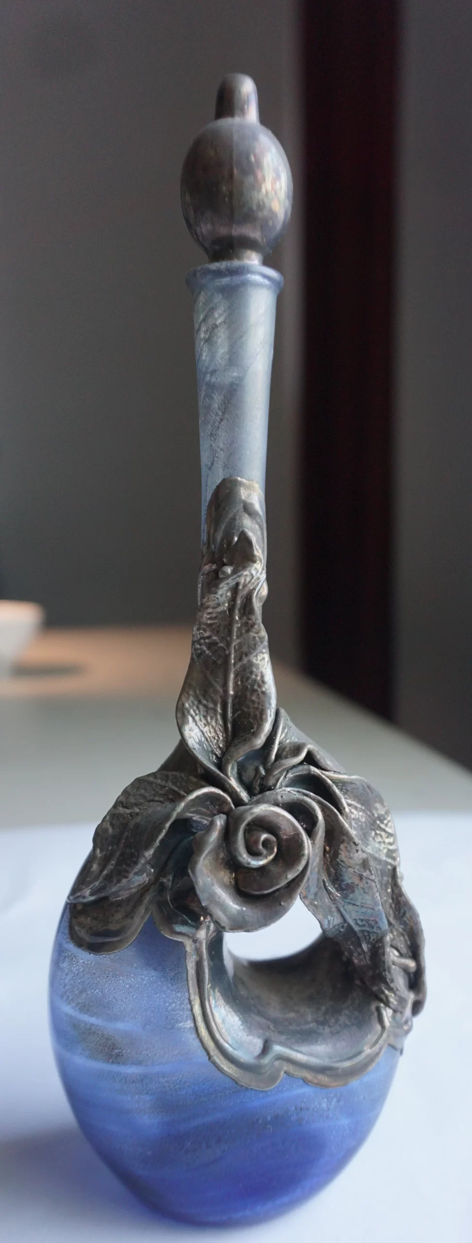 Blown Glass Perfume Bottle with Sterling Overlay (Domar OOAK, Israel)