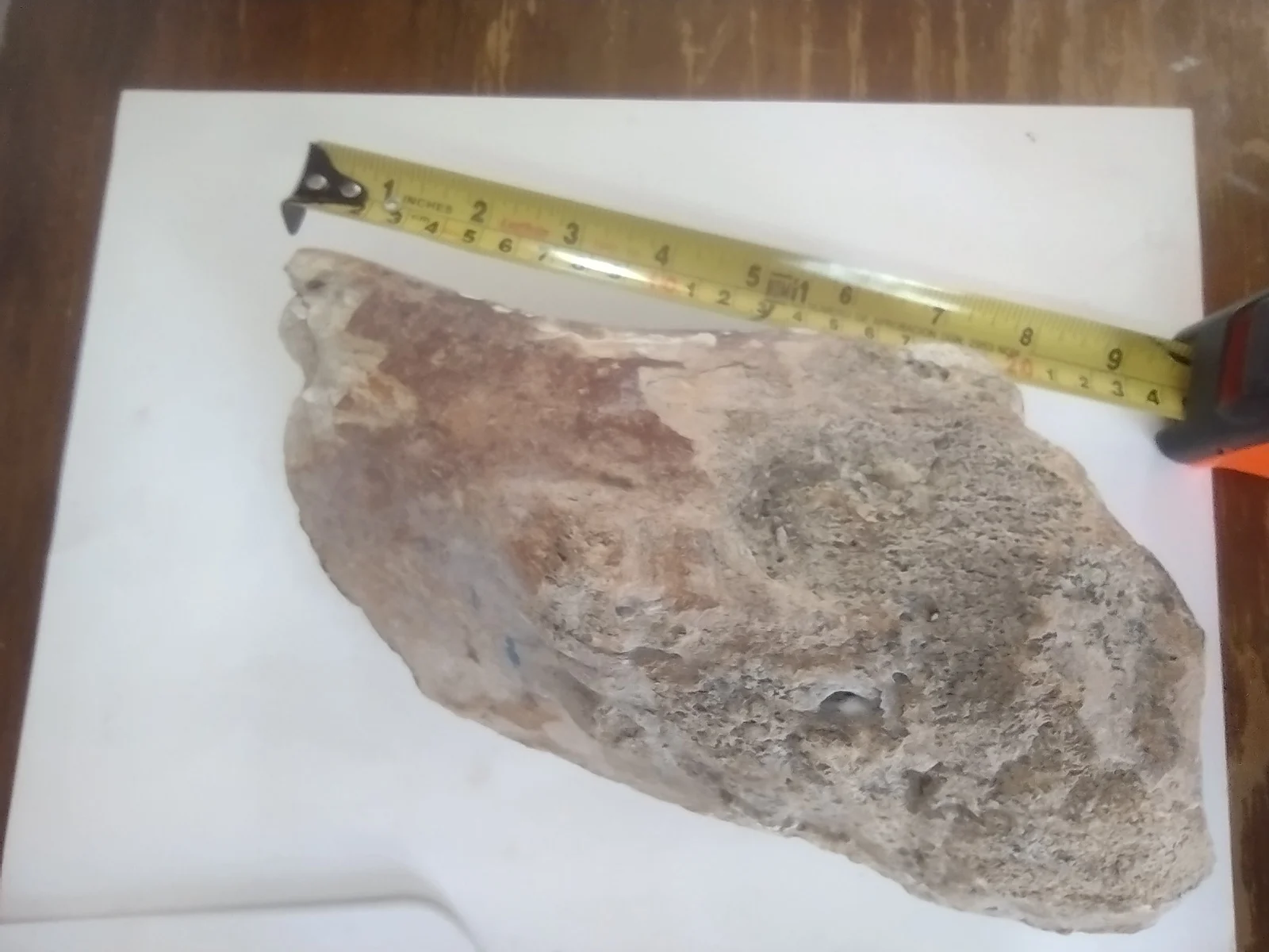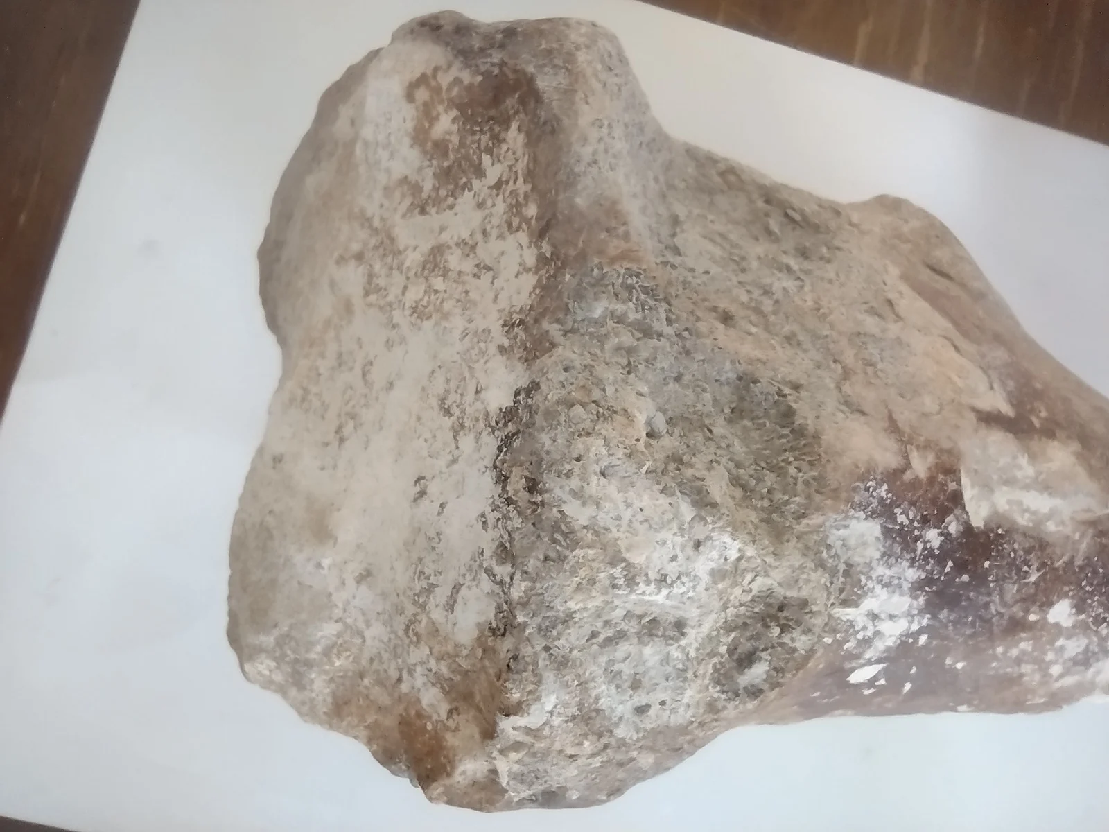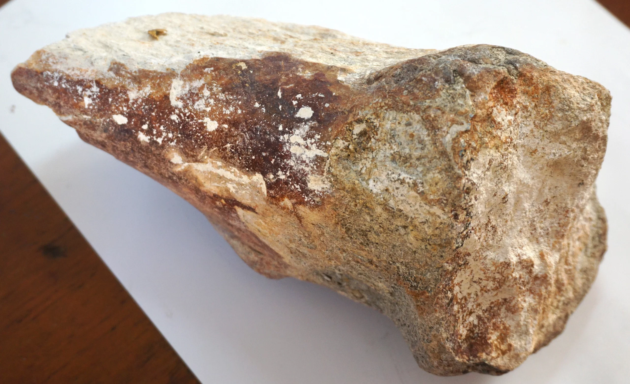 This impressive fossilized bone fragment was discovered in Baja California Sur and exhibits clear signs of mineralization and age, with a mix of dark brown and beige tones. The porous structure and density suggest that it may belong to a large prehistoric vertebrate, possibly a dinosaur or marine reptile. The broad, flattened end and tapered shape could indicate it was part of a limb bone or rib.The fossil weighs over 3 kg and is approximately 24 cm in length. Due to its density, coloration, and preservation, it appears to be authentic and not a modern replica. Identification to a specific species or anatomical position would require further analysis by a paleontologist or natural history expert.A striking piece for any fossil collection, museum display, or educational exhibit.