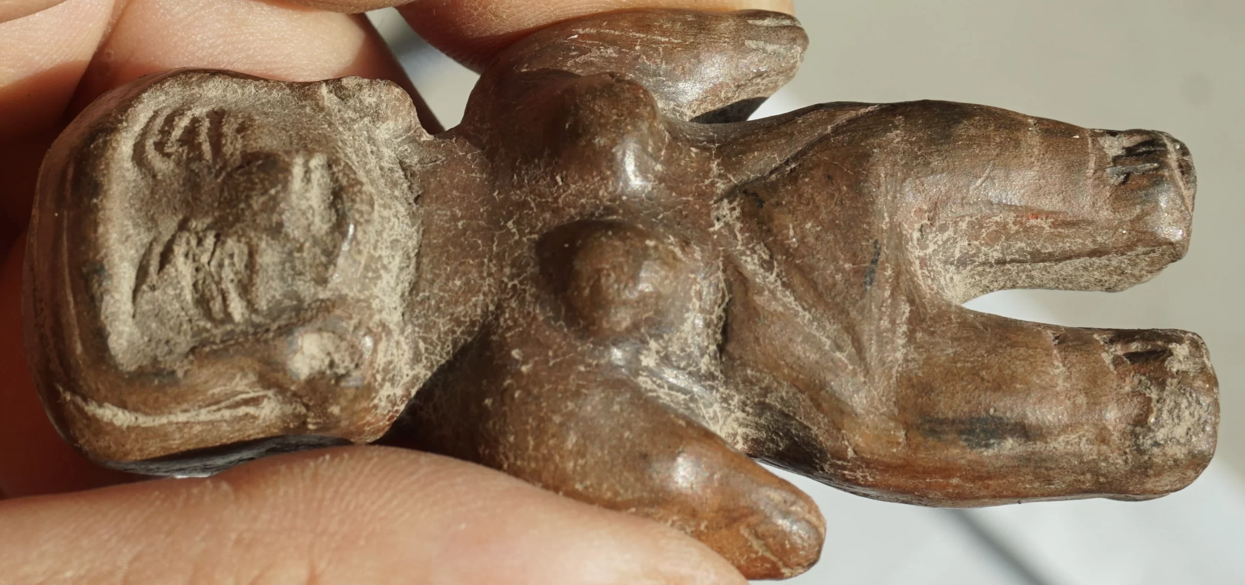 This hand-carved female figurine originates from the Ecuadorian coastal region and is likely associated with the Valdivia culture (circa 3500–1500 BCE), one of the oldest known settled cultures in the Americas. The Valdivia people are well-known for their stylized ceramic and stone female figurines, often used in fertility rituals or as spiritual icons. The figurine features a broad head with incised facial markings, a rounded body with prominent breasts and hips, and slightly abstracted limbs. These features are classic traits of fertility figures, emphasizing reproduction and the maternal form. Its surface patina and wear suggest significant age and handling, possibly through generations. This artifact is a compelling example of early symbolic expression and the cultural importance of femininity in ancient South American societies.
