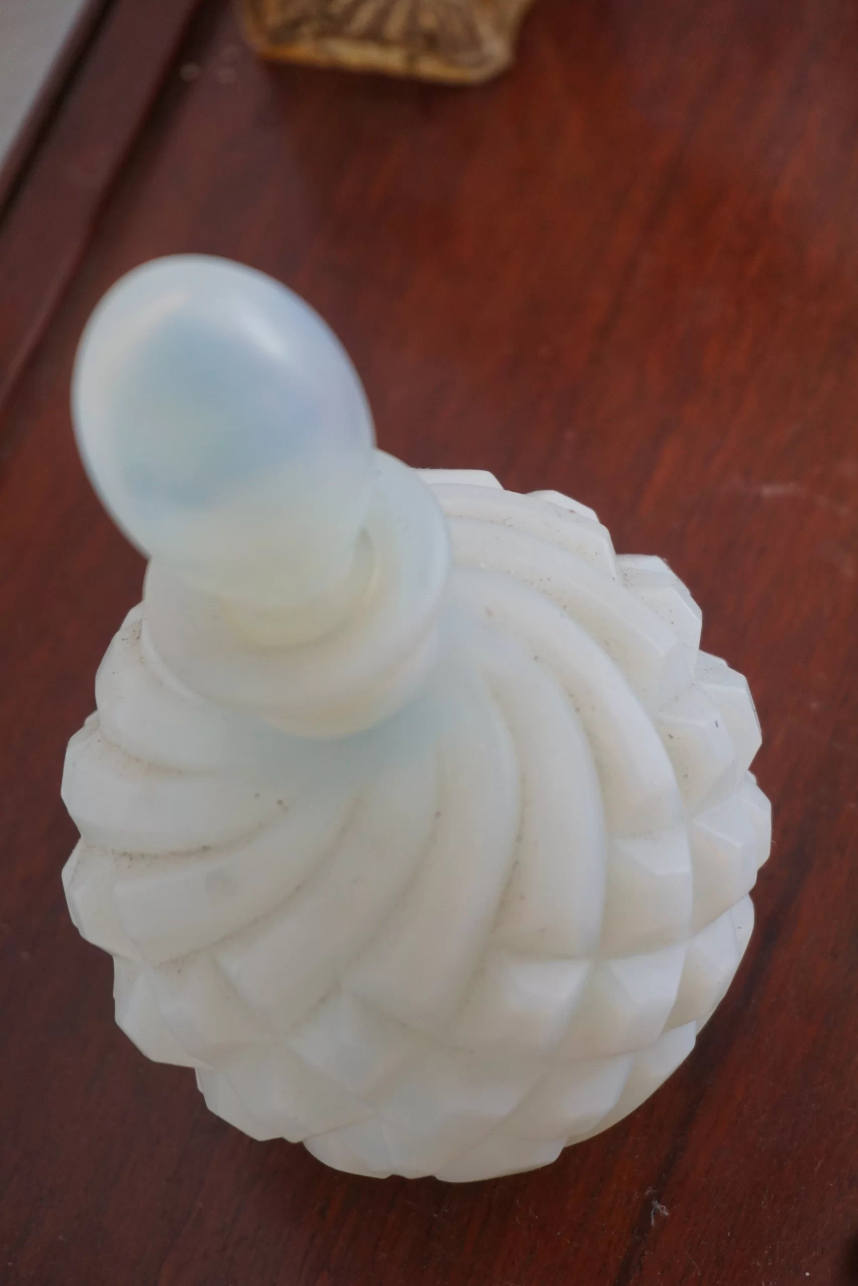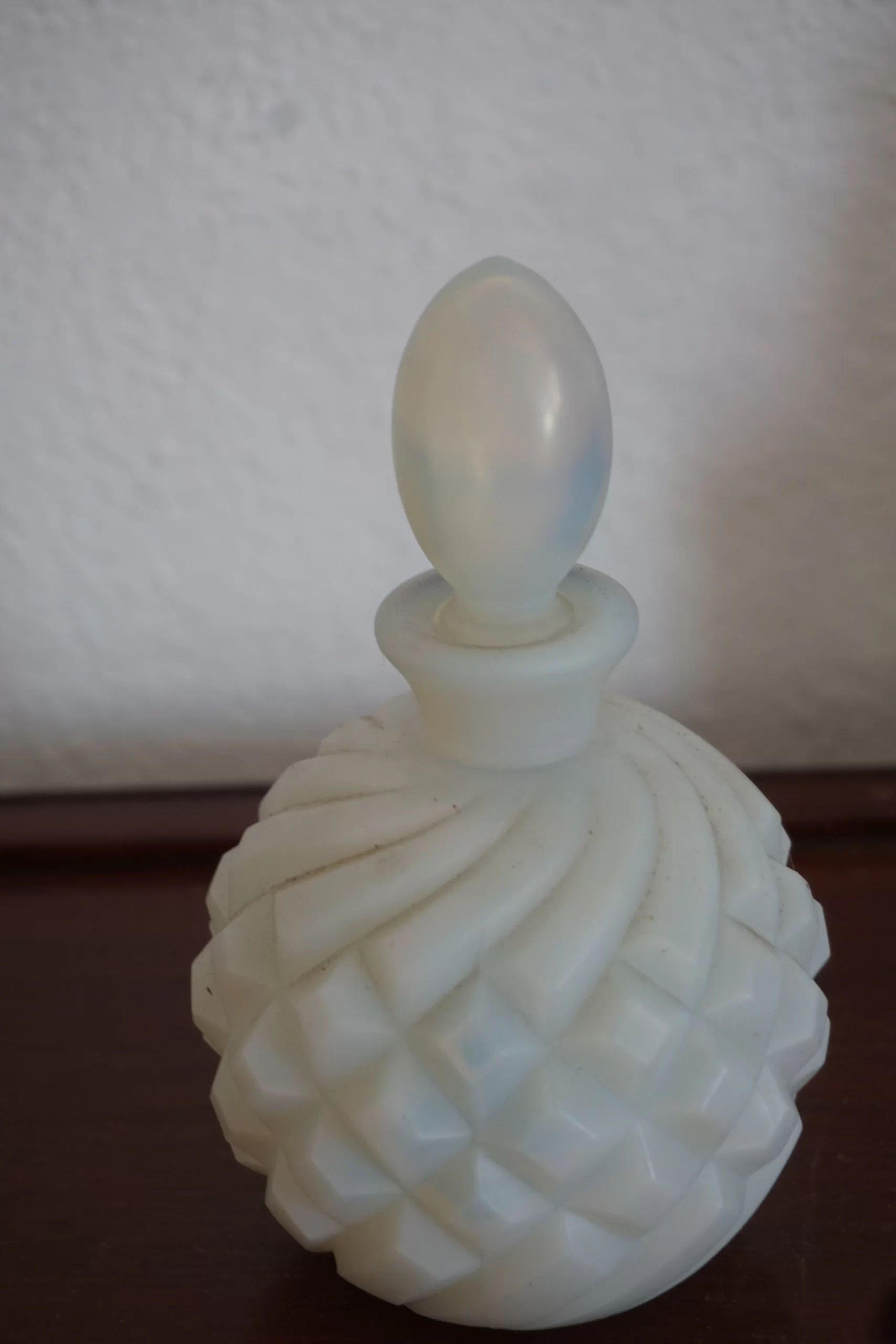 Manufactured by Waltersperger, one of the last artisanal glassmakers in France, this opalescent glass bottle is finely molded and lightly iridescent. The base is marked with the Waltersperger stamp, indicating a limited series likely produced for a niche perfume house.